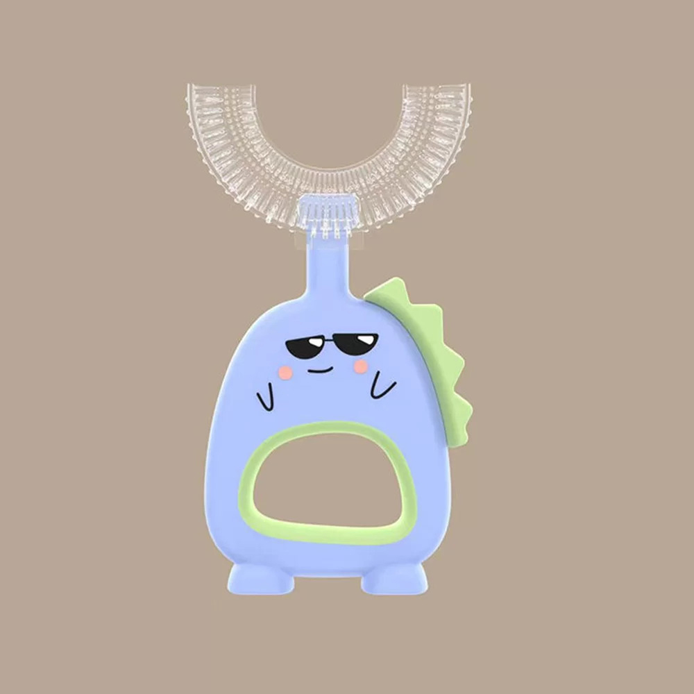 - حالت U شکل مسواک به گونه ای است که به طور همزمان دندان های پایین و بالای کودک را تمیز می کند