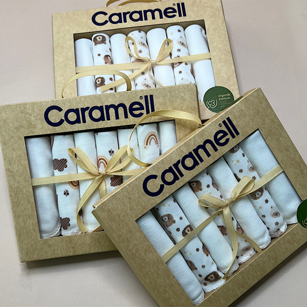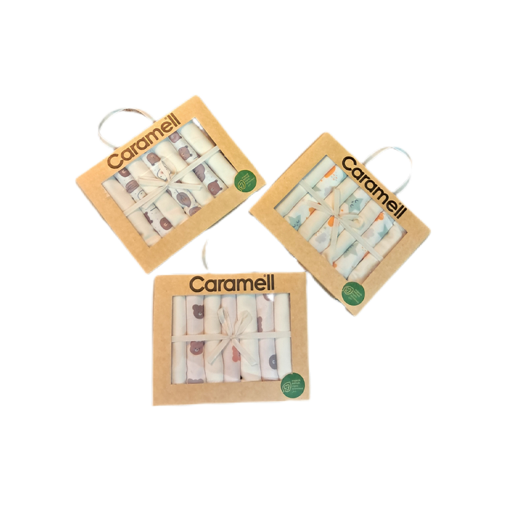 دستمال دست وصورت نوزاد کارامل caramell طرح دار مجموعه 7 عددی