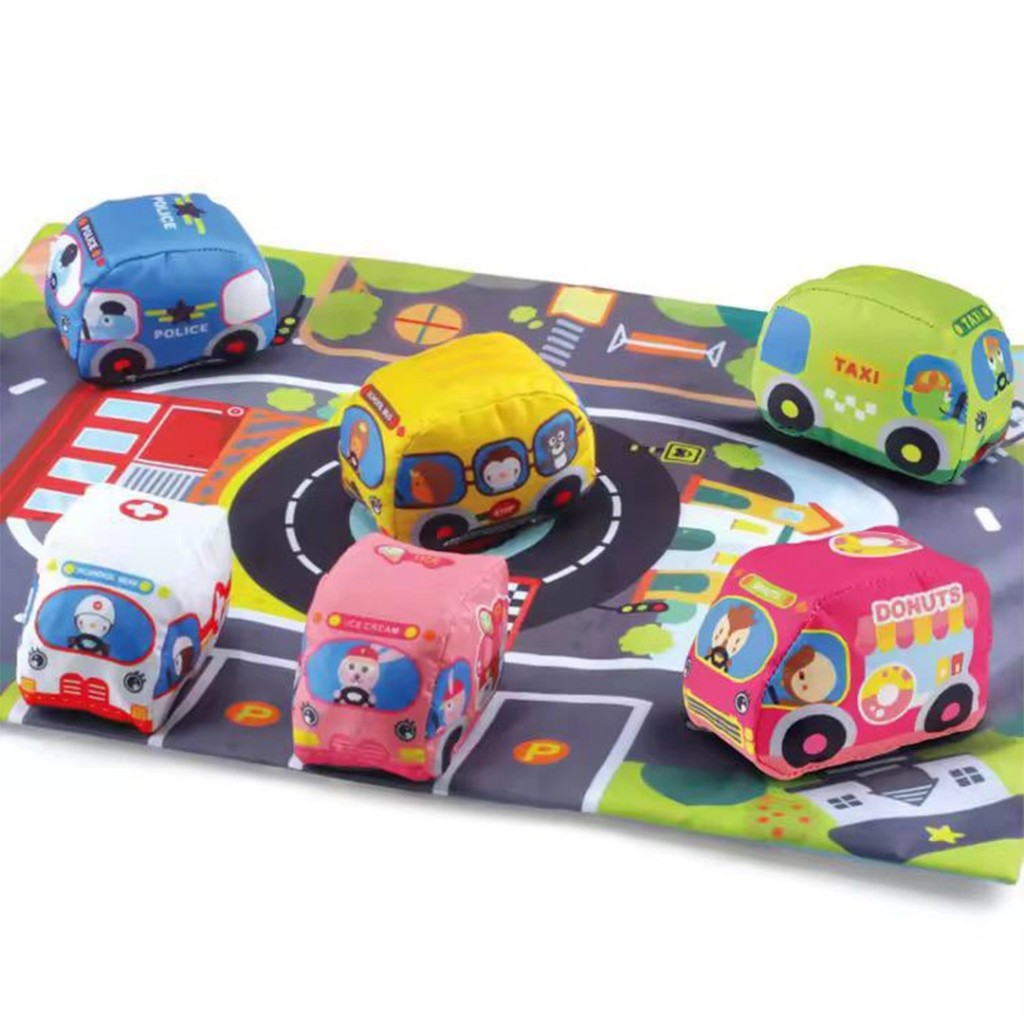 - دارای 6 ماشین پارچه ای بدون چرخ و 4 ماشین پارچه ای چرخ داربسیار جذاب و سرگرم کننده برای کودکان