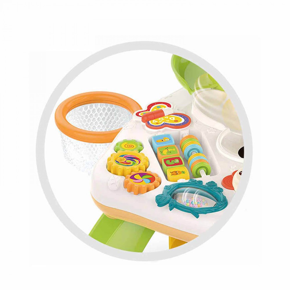 - دارای جای توپ روی پایه میز که کودک می تواند بعد از بازی با گردانه توپ به راحتی توپ خود را پیدا کند