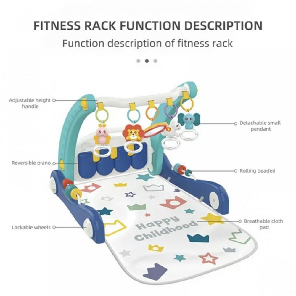 - در حالت تشک بازی، کودک علاوه بر بازی با آویز عروسکی بالای سرش با صفحه کلید پیانویی پایین پای خود نیز سرگرم می شود